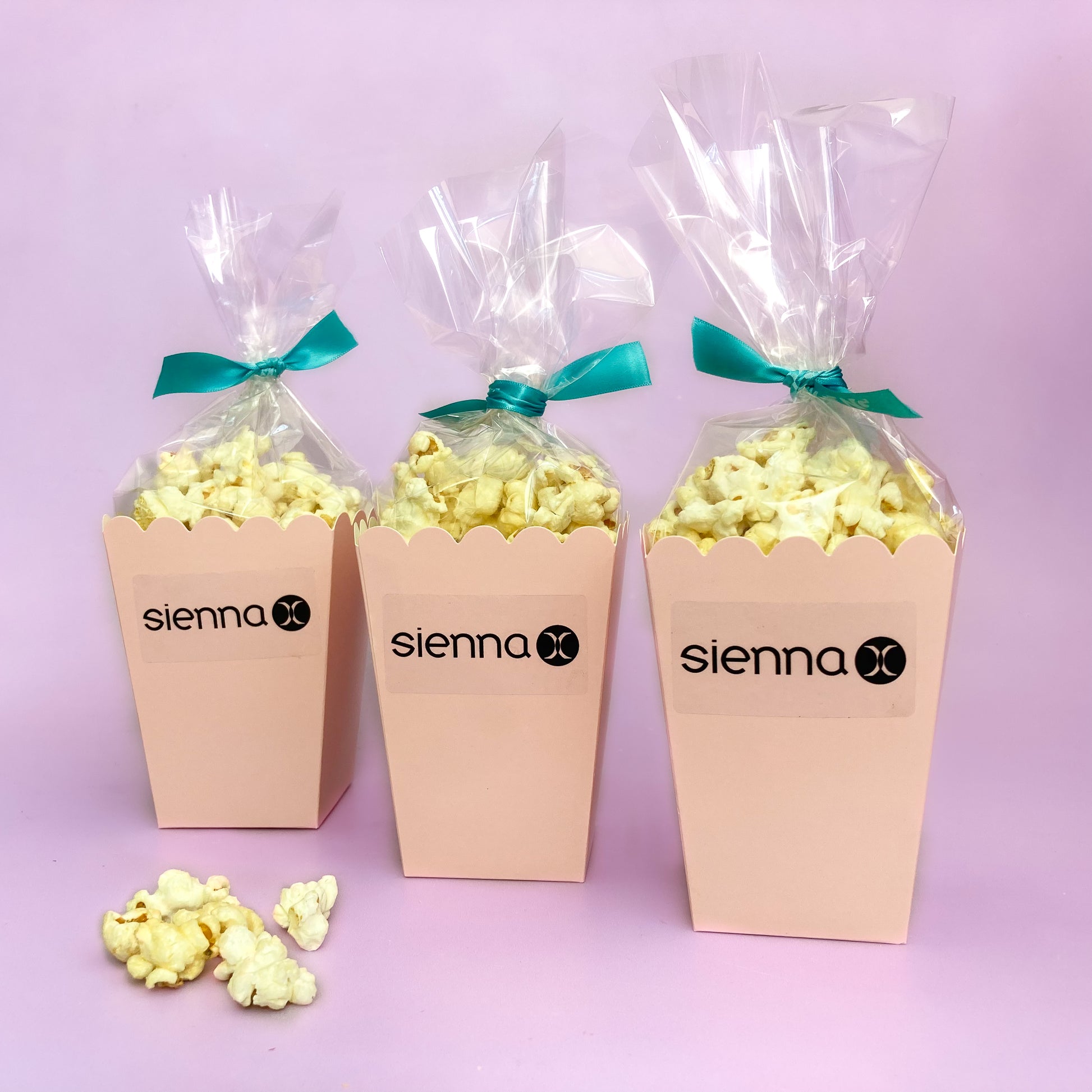Enhance your event and create a unique snacking experience with branded popcorn tubs. Each miniature tub of moreish sweet and salty popcorn can be customised with your logo or custom artwork, and finished with company-branded ribbon.