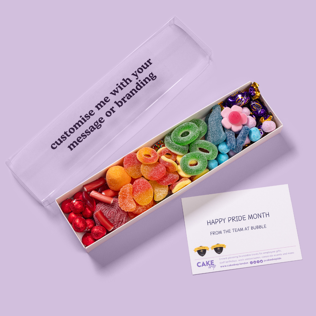 Share the love with your teams and clients nationwide this June with Pride candy boxes. Opt for a classic message or brand up the box with your logo or custom artwork*. Delivered through the letterbox alongside a customisable* postcard featuring your personal note.