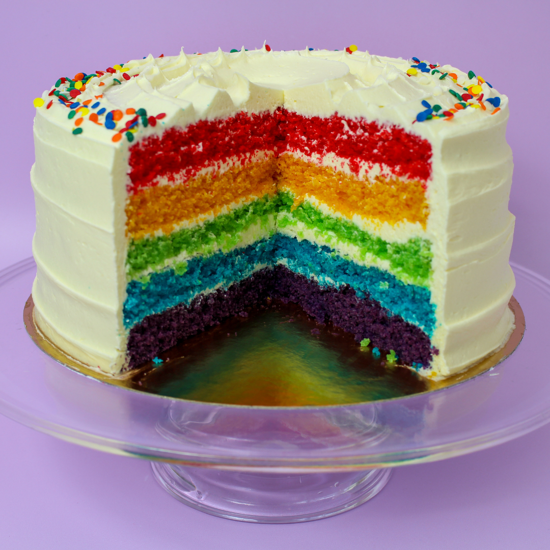 Treat your team this Pride month to a 5-layer vanilla rainbow cake!