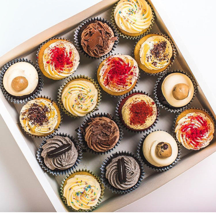 Freshly-baked cupcakes in range of flavours, changing seasonally. Order as a box of 24. Gluten Free & Vegan options available.